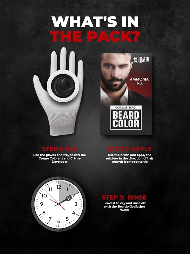 - SKIN FRIENDLY: The Beardo Beard Color not only helps soften and detangle your beard but also lends a natural black colour to your hair