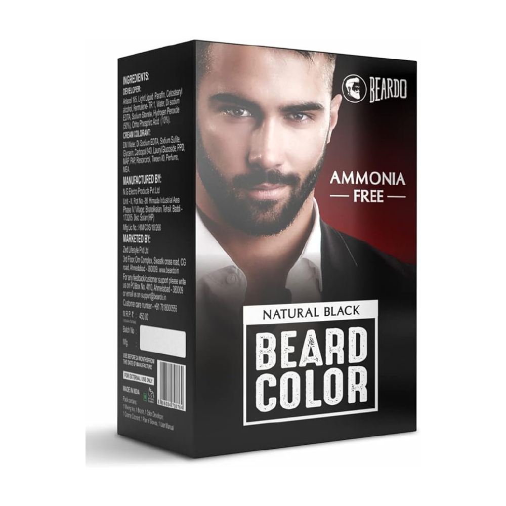 - Beardo Beard Color For Men - Natural Black (30 ml Color Developer, 30 ml Creme Colorant)| No Ammonia |No Harsh Chemicals |No Stain Formula | Skin Friendly