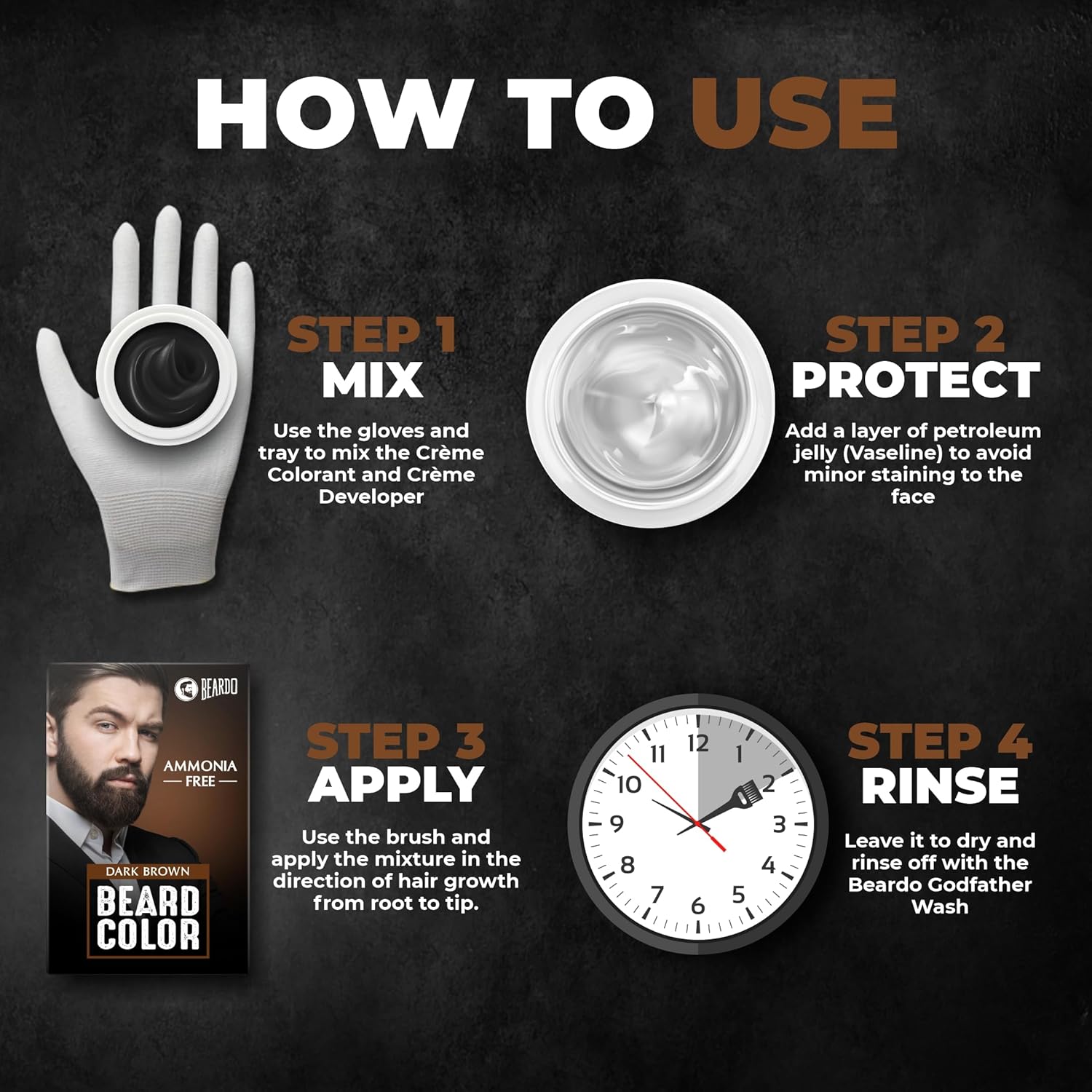 - NO STAIN FORMULA: Despite its rich and intense after use effect, Beardo's Natural Brown Beard Color is easy to use and easy to wipe and won't leave a stain behind.