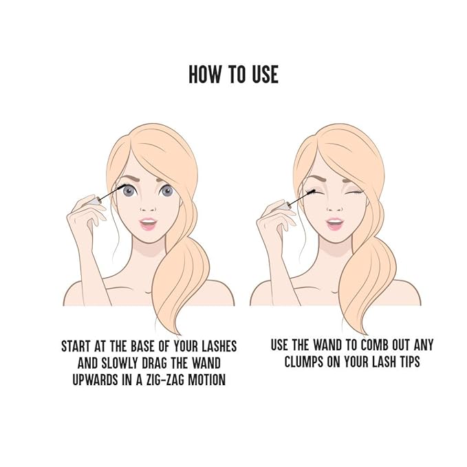 Apply Zoom and Whoosh to clean, dry lashes, starting from the base of the upper lash line to the tips in an outwards motion. Repeat on the lower lashes.