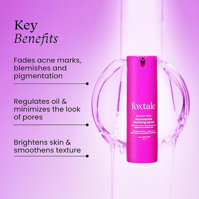 - Delete 7 Signs of Acne: This Niacinamide Clarifying Serum is known to target 7 signs of acne like excess oil, clogged pores, blackheads, bumpy texture, redness, pigmentation, and acne marks to pave the way for clear skin.