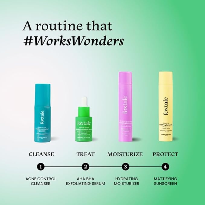 - Complete acne control treatment: This multitasking exfoliating serum works on past, present, and future acne. It fades out spots & marks, reduces inflammation and clears out active acne, and prevents future acne as well.