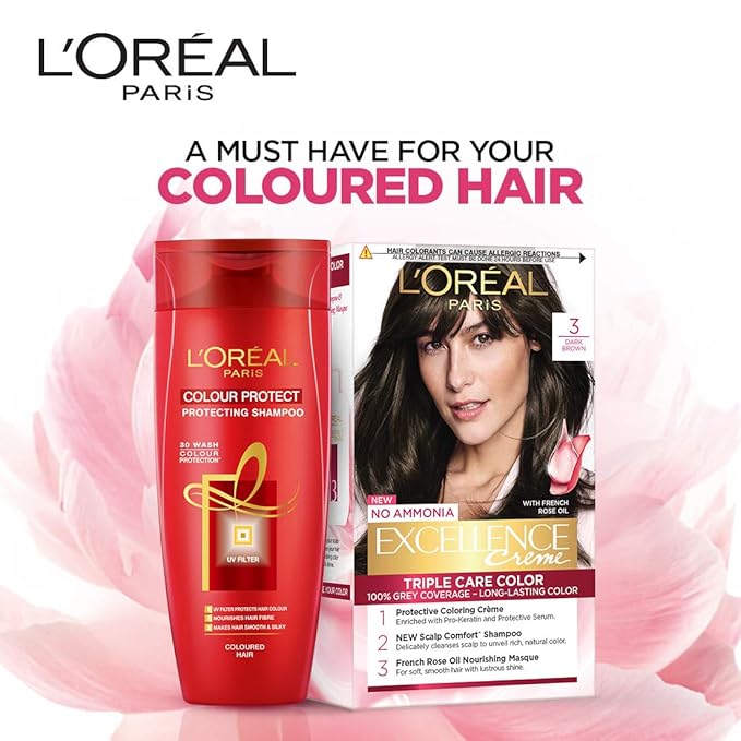 L'Oreal Paris Excellence Triple Care Hair Colour Cream, 25ml + 25g - 3 Natural Darkest Brown