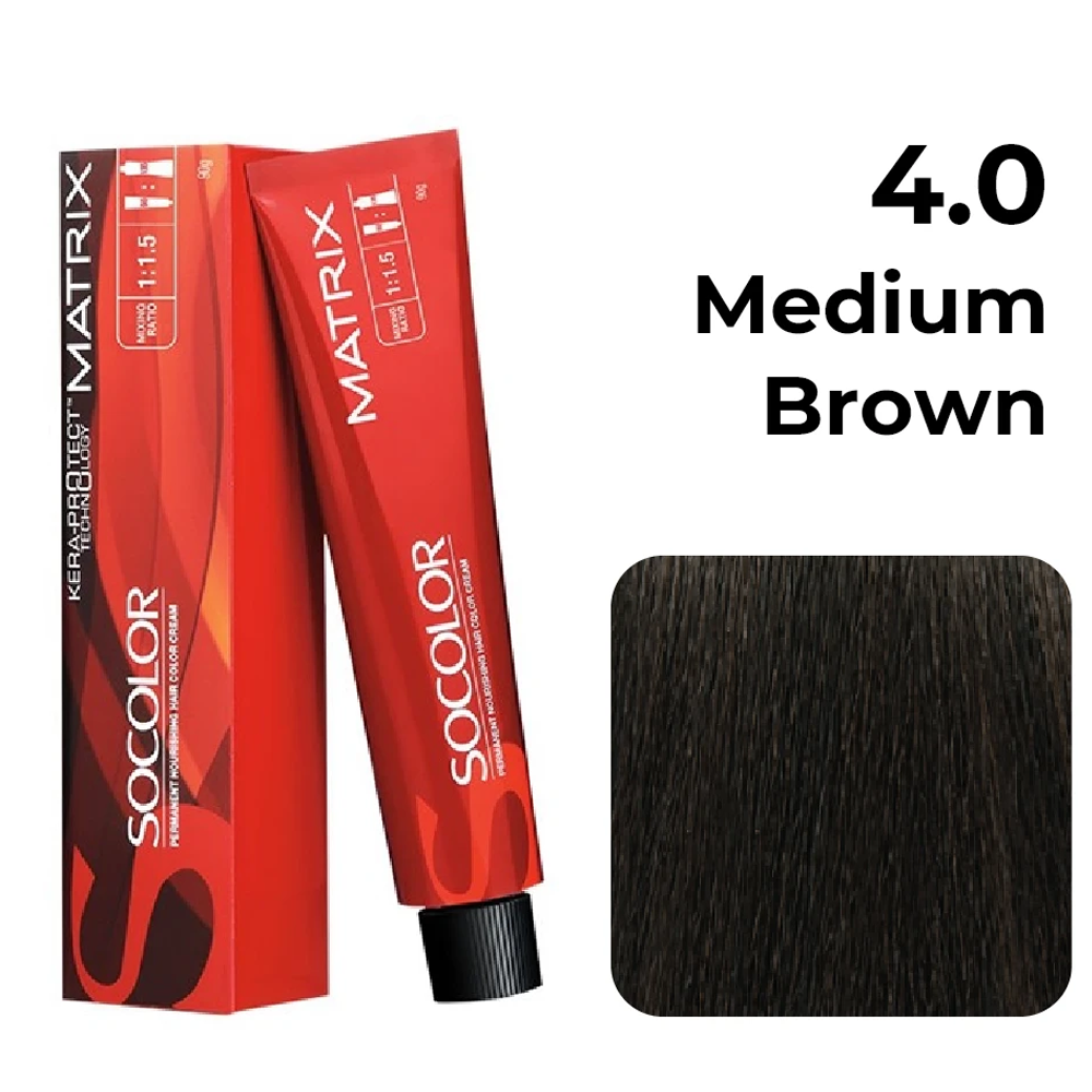 The Matrix SoColor 4.0 Medium Brown is permanent. Permanent nourishing hair color with Kera-Protect TechnologyTM provides long-lasting, vibrant color with 360o keratin protection.