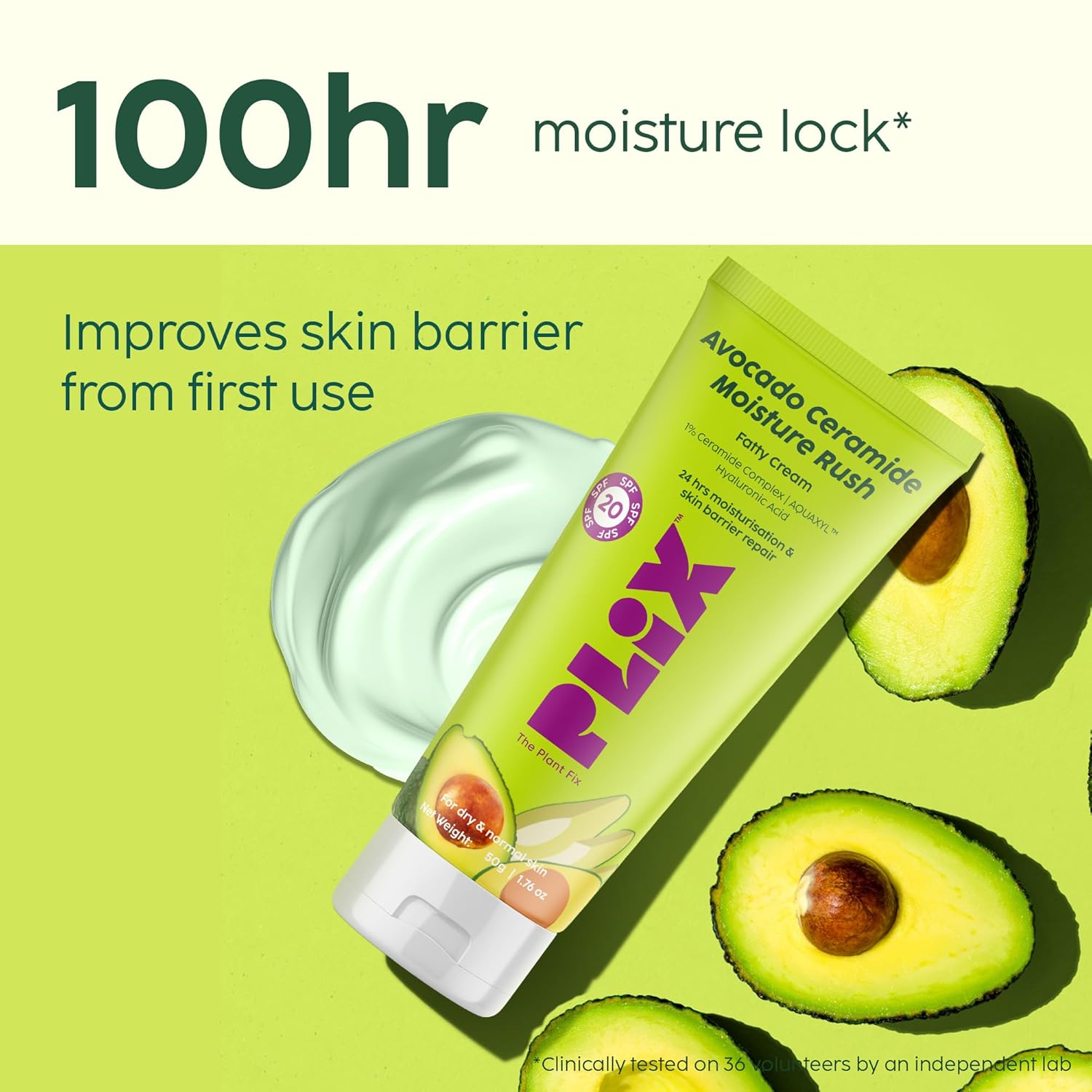 PLIX - THE PLANT FIX Avocado Ceramide Moisture Rush Fatty Cream With Spf 20 | Deep Moisturization | Barrier Repair Cream 50gm