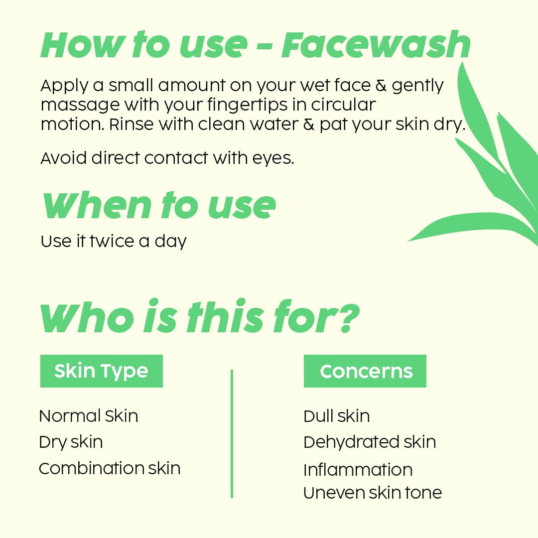 - How To Use: Apply a small amount on your wet face & gently massage with your fingertips in a circular motion. Rinse off with water & pat dry. Avoid direct contact with eyes. Apply it in both your A.M. & P.M. regimen.
