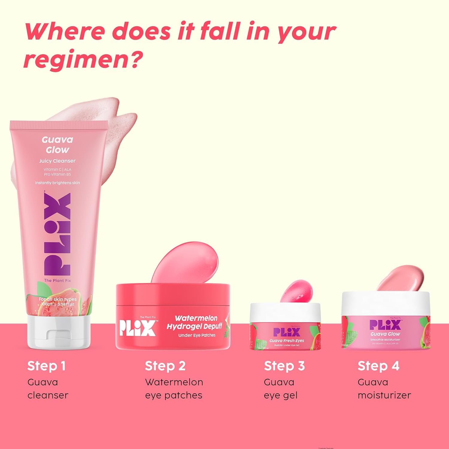 Plix Watermelon Hydrogel Under Eye Patches for Dark Circles & Puffiness Reduction | Caffeine & Hyaluronic Acid | Eye Patches | Instantly Hydrates & Cools | 60 Patches